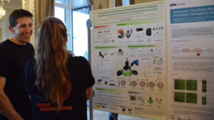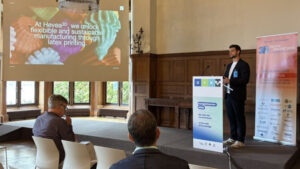 The first day on Monday, 6 October 2025, was dedicated to the Young Researchers Symposium and the theme “Focusing a Sustainability Lens on Additive Manufacturing: Asking More from Science and Engineering”. Ander Leiza Balda from POLYMAT and UPV/EHU held a talk that day on “Standardizing light: a modular photoreactor for controlled reproducible and high-throughput photochemical reactions”. He also presented a poster with the same title and attended to visitors in the stand of Hevea3D that was showcasing the photoreactor.